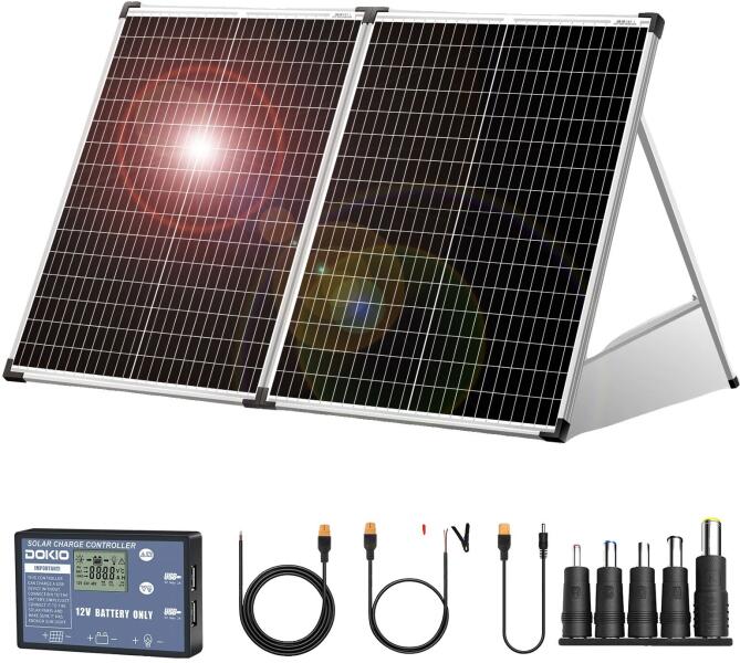 Dokio Összecsukható napelemkészlet, 100 W teljesítmény, kompatibilis 12 V -os akkumulátorokkal, 100W