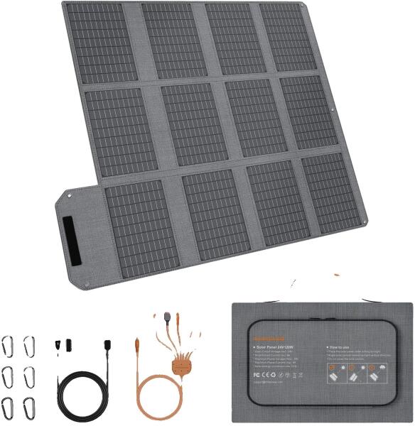 Napelem, Maximális teljesítmény 120 W, Összecsukott méret 32, 5 x 25 x 8 cm, Összecsukott méret 121 x 97 x 0, 5 cm, USB-C kimenet 5/9/12/15V, USB-A kimenet 5/9/12V