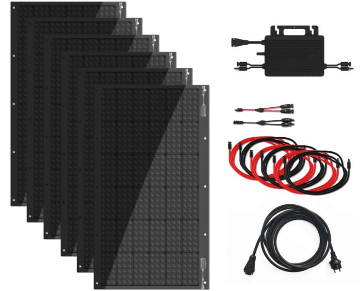 Technaxx Rugalmas napelem készlet erkélyre Technaxx TX-270, 600W, 1 x microintervor, Wi-Fi, Hálózaton, lakossági használatra, fekete